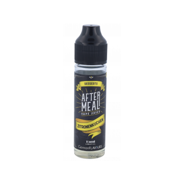 Der Hersteller After Meal präsentiert uns die besten Dessert Aromen. Das ist das After Meal Zitronenkuchen Aroma. Wie sein Name schon verrät schmeckt das Aroma nach einem süßen und saftigen Zitronenkuchen.