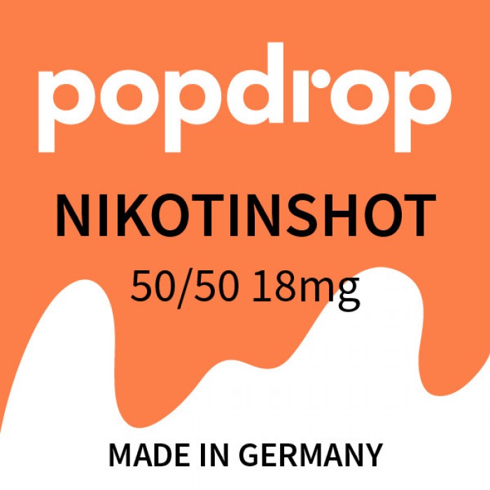 Der 20mg Nikotin Shot von Popdrop setzt sich zusammen aus 50% PG (Propylenglycol), 50% VG (Glycerin) und einem Nikotingehalt von 18mg/ml. Mit dem Nikotinshot können Sie den Nikotingehalt Ihrer Liquids erhöhen und entsprechend dosieren. Um aus den Nikotin Shots mit einem Aroma Liquid anzumischen ist zusätzlich Liquidbase nötig, welche Sie ebenfalls günstig in unserem Shop kaufen können.