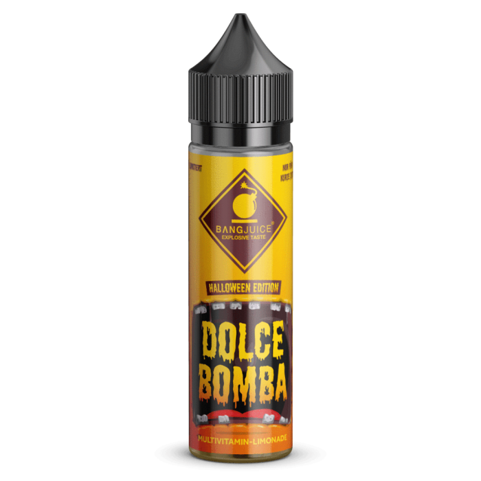 Das Dolce Bomba Aroma von Bang Juice wird nur für kurze Zeit erhältlich sein. Um euch die Zeit rund um Halloween noch besser gestalten zu können hat Bang Juice das Dolce Bomba Aroma als Halloween Edition kreiert. Der Geschmack erinnert an eine Multivitamin Limonade der besonderen Art., denn im Vordergrund des Dolce Bomba Aroma stehen dieses mal nämlich, neben frischer Orange und exotischer Maracuja, auch saftige Kiwi und süße Himbeere.