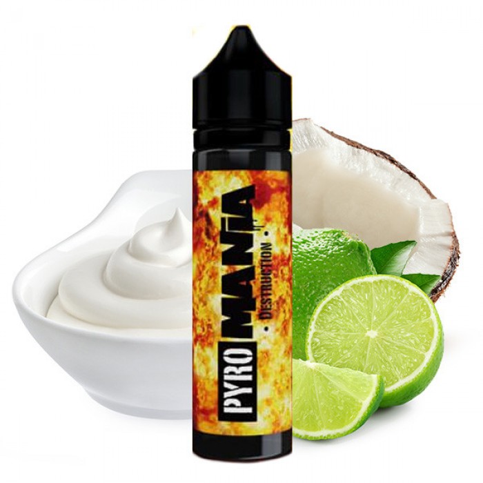 Das PYROMANIA Destruction Aroma schmeckt beim Dampfen nach cremigem Joghurt mit feinen Kokosraspeln und einem Spritzer Limette.