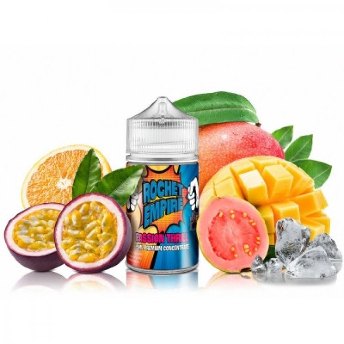 Das Aroma Passion Thrill von Rocket Empire schmeckt beim Dampfen nach fruchtiger Maracuja, Mango, Guave und Orange sowie einer leichten Frische