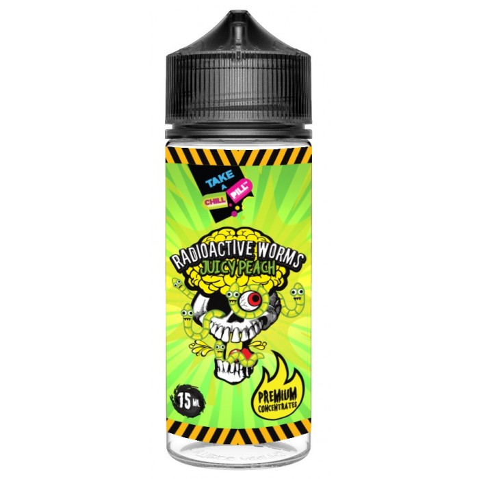 Das Radioactive Worms Juicy Peach Aroma von Chill Pill schmeckt wie saftiger Pfirsich + saure Gummiwürmer mit Zucker bestreut.