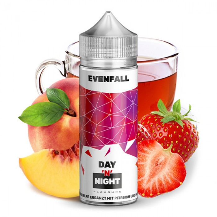 Das ist das Day 'N' Night Evenfall Aroma. Gedampft schmeckt es nach einer wunderbaren Kombination aus frischen Erdbeeren, saftigen Pfirsichen und einem Hauch grünen Tee. Das Day 'N' Night Evenfall Aroma ist besonders im Sommer eine fruchtige und gut gelungene Kreation, welche man mal probiert haben sollte.