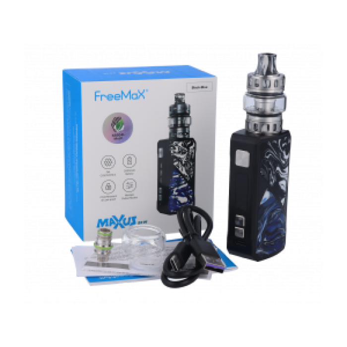 Das FreeMax Maxus 50W Set ist in sechs verschiedenen Designs erhältlich. Jedes der Designs ist auffallend bunt gemustert. Also bist du mit dieser E-Zigarette in deiner Hand garantiert ein echter Hingucker. Das FreeMax Maxus 50W Set setzt sich aus dem gleichnamigen Maxus Akkuträger und dem Fireluke 22 Verdampfer zusammen. Der Akku der E-Zigarette ist fest verbaut und hat eine Kapazität von 2000mAh. Die maximale Ausgangsleistung liegt bei 50 Watt. Über das mitgelieferte USB-C Kabel kann man den Akku an einer geeigneten Stromquelle wieder aufladen. Der Dampfer kann zwischen den verschiedenen Ausgabemodi selber wählen. Zur Verfügung stehen folgende Modi: VPC, TC-TI, TC-SS, TC-NI oder TCR. Der Tank des FreeMax Maxus 50W Set hat ein Fassungsvermögen von 3,5ml. Das Liquid kann ganz einfach via Top-Fill-System von oben in den Tank gegeben werden. Über die regulierbare Airflow-Control kann man den Zugwiderstand seinen individuellen Vorlieben entsprechend anpassen. Im Lieferumfang enthalten sind zwei passende Coils. Der DTL Mesh Coil mit einem Wiederstand von 0,5 Ohm und der DTL Mesh Coil mit einem Widerstand von 0,25 Ohm. Beide Coils sind auf einen direkten Lungenzug ausgelegt (DL-Dampfen). Auf dem Display können wichtige aktuelle Daten abgelesen werden.