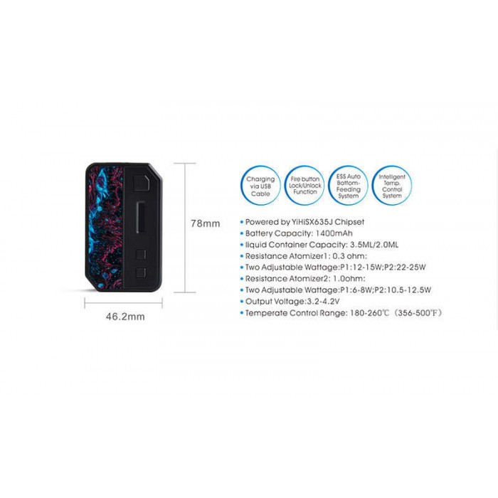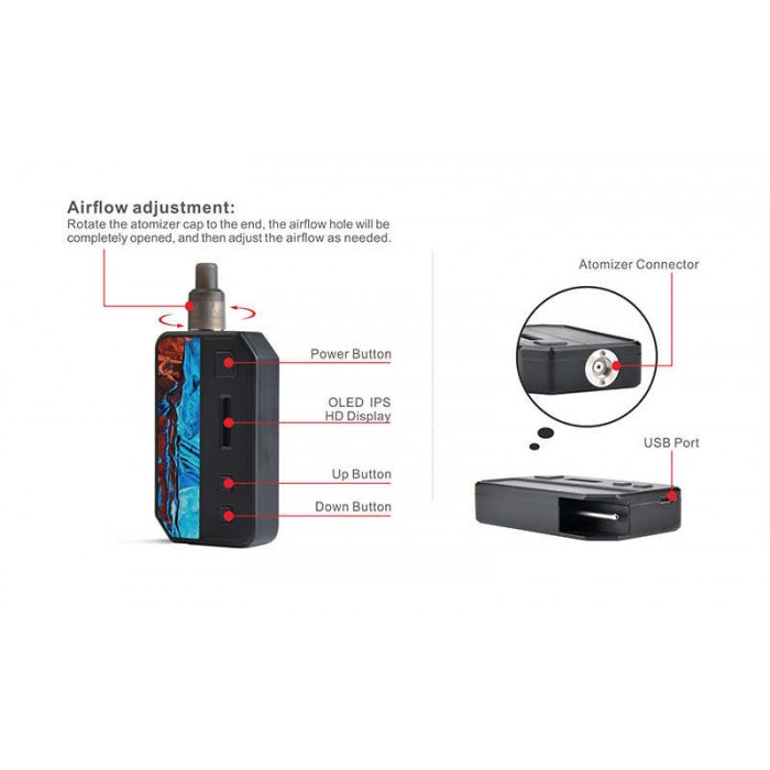 Der IPV V3 Mini Sqonker verfügt über eine kleine einstellbare Liquidpumpe. Der Mod beinhaltet einen 3,5ml Liquid Tank, welcher entfernt und nachgefüllt werden kann. Die V3 mini E-Zigarette wird betrieben von einer wiederaufladbaren 1400mAh Akkuzelle, die Sie sicher durch den Tag bringt und innerhalb von ca. einer Stunden vollständig aufgeladen ist.