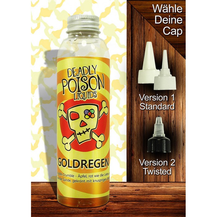 Das Goldregen Liquid von Steamwolf aus der Premium Liquid Reihe "Deadly Poison" schmeckt beim Dampfen nach leckerem Bratapfel-Crumble, aus roten Äpfeln, bedeckt mit knusprigen Streuseln.