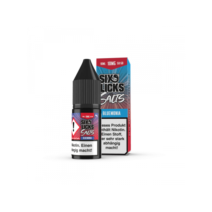 - 1 x 10ml Flasche mit 10ml Six Licks Bluemonia Nikotinsalz