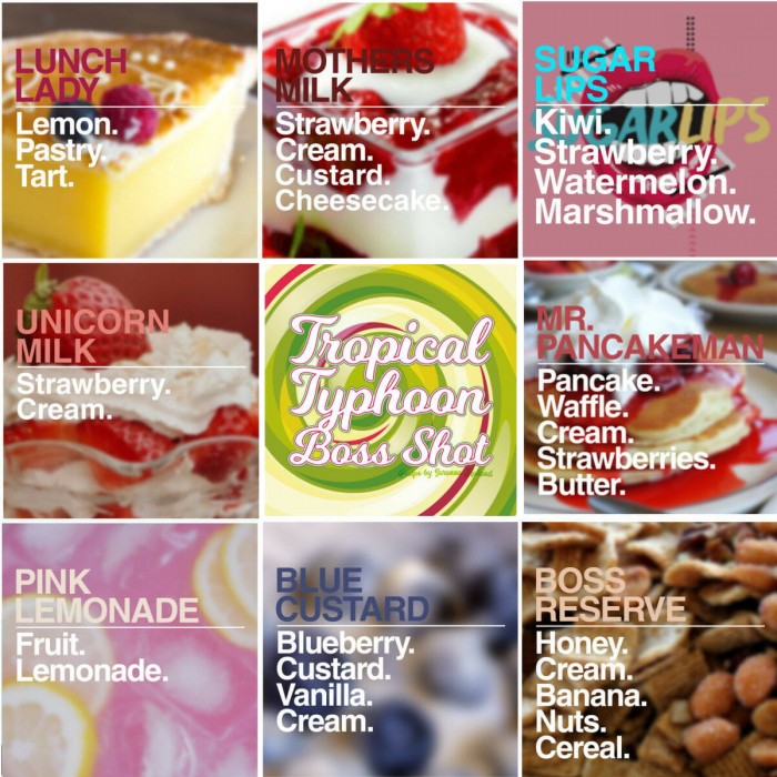 - Tropical Typhoon: Ananas, Erdbeere, Limette, Sahne.