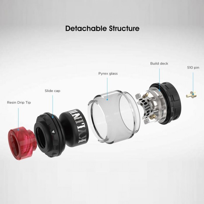 Im Kylin V2 befindet sich ein großzügiges Wickel-Deck mit tiefer Liquidwanne und Wabenförmigen Bottom Airflow. Das Deck des Kylin V2 Verdampfers kann sowohl als Single- als auch Dual-Coil gewickelt werden.